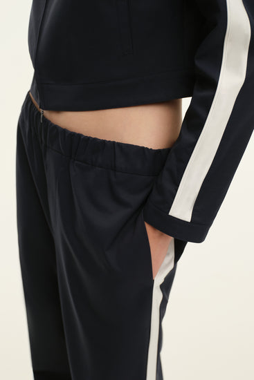 Straight-leg trousers with piping and an elasticated waistband. A relaxed fit and pure lines make these trousers a versatile base.